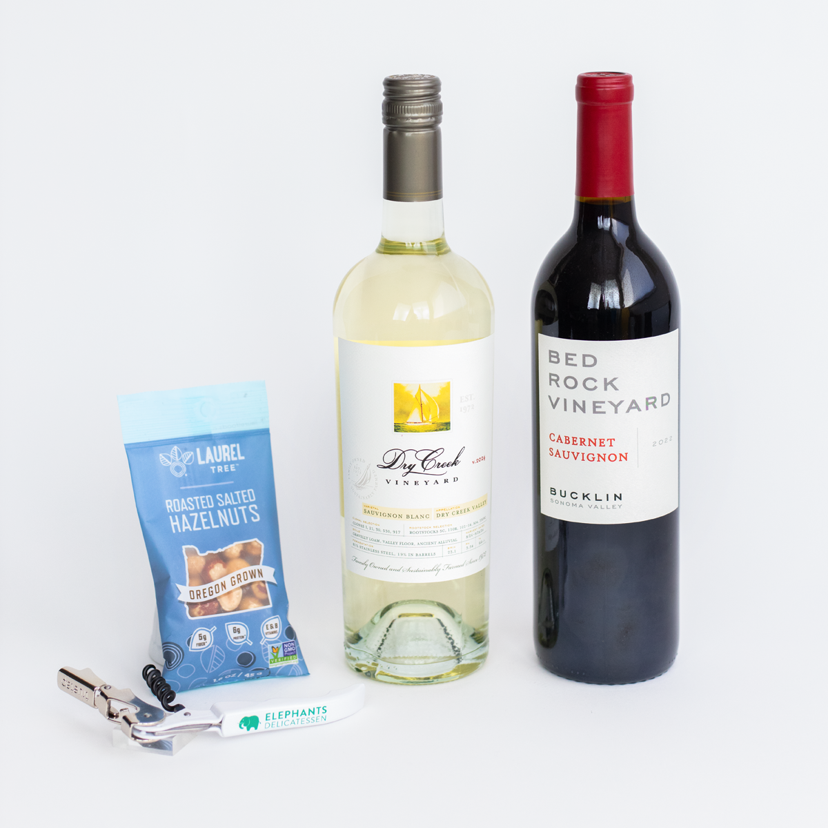 Two Sonoma wines shipped with an Elephants Wine Key and Roasted Hazelnuts.